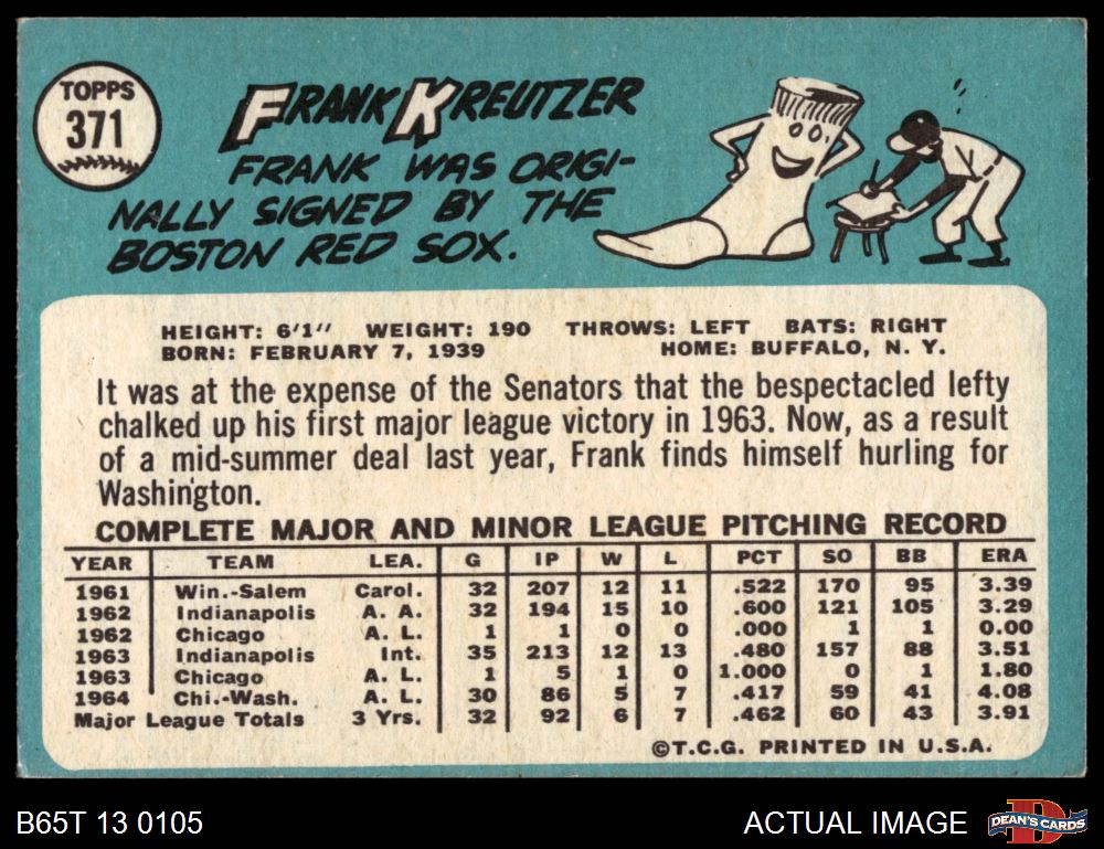 1965 Topps #371 Frank Kreutzer 4 - VG/EX