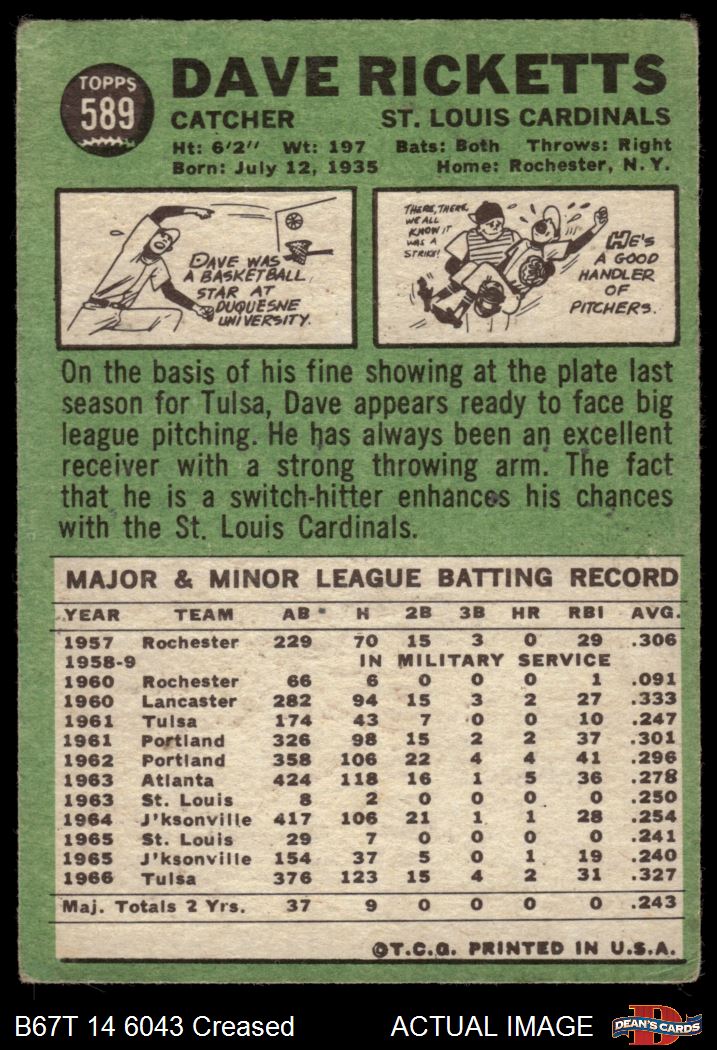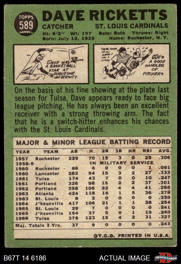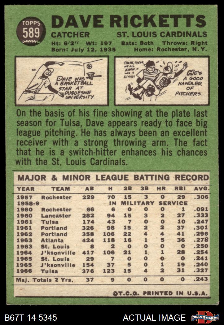 1967 Topps #589 Dave Ricketts