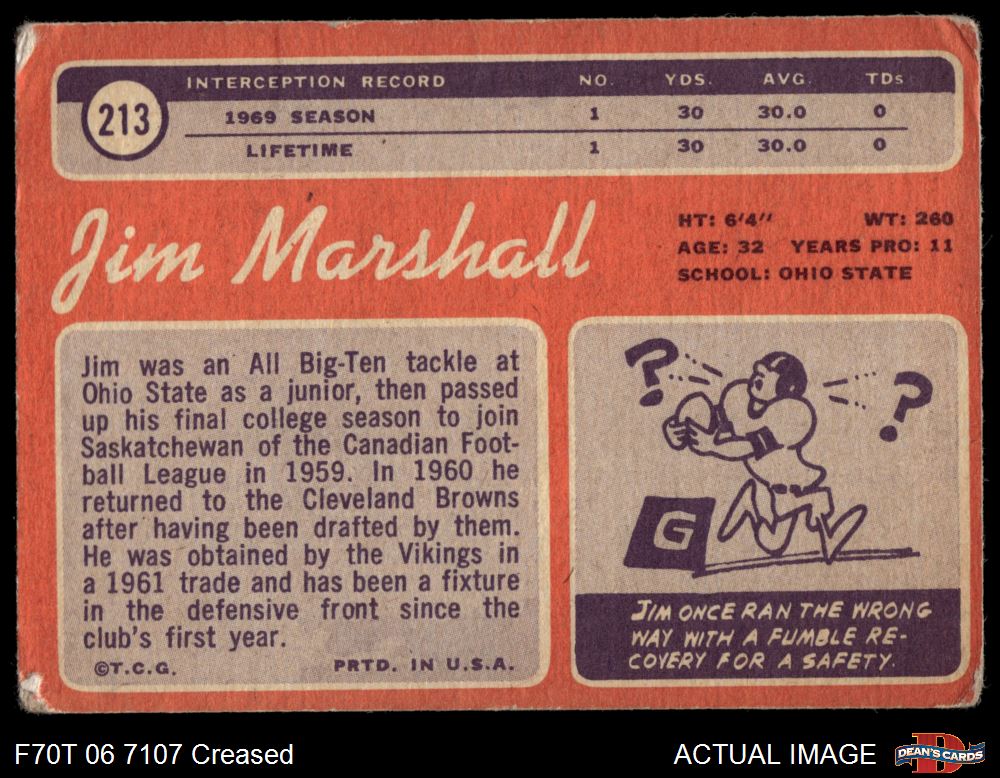 1970 Topps #213 Jim Marshall 1.5 - FAIR