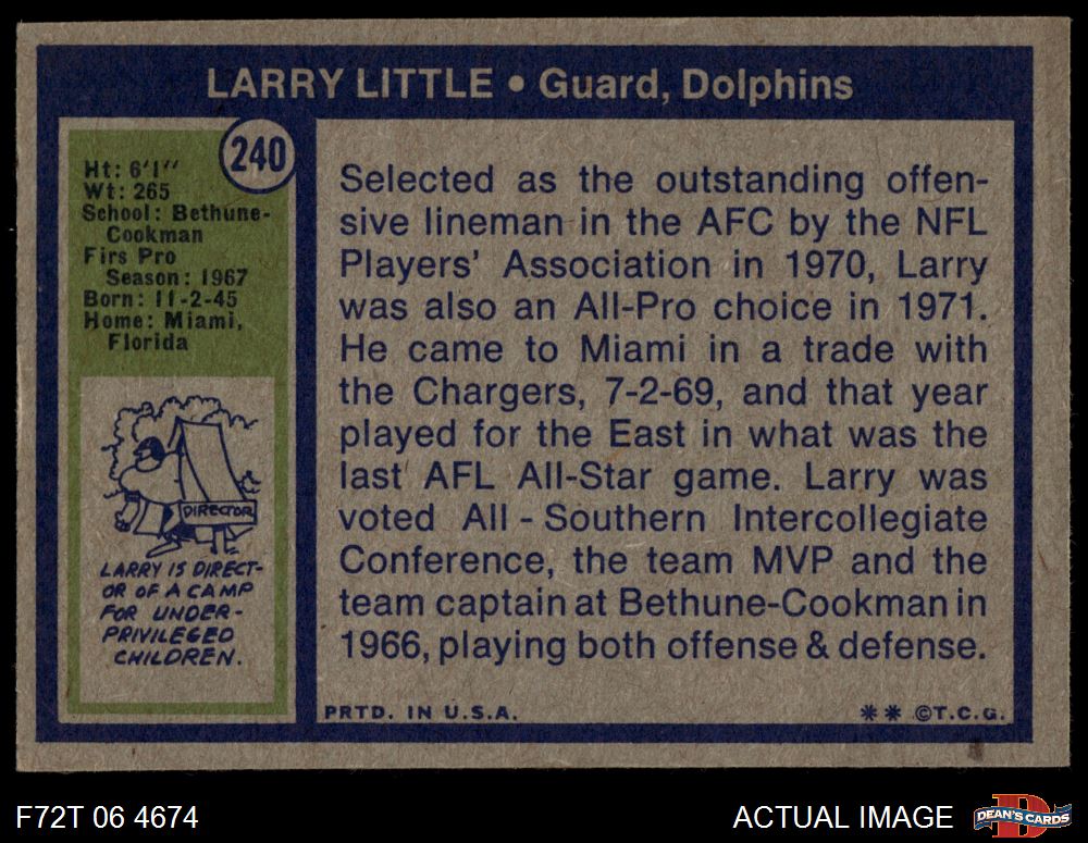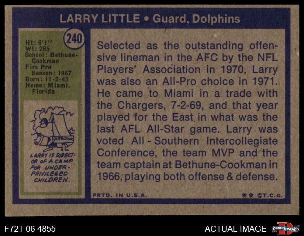 1972 Topps #240 Larry Little 5 - EX