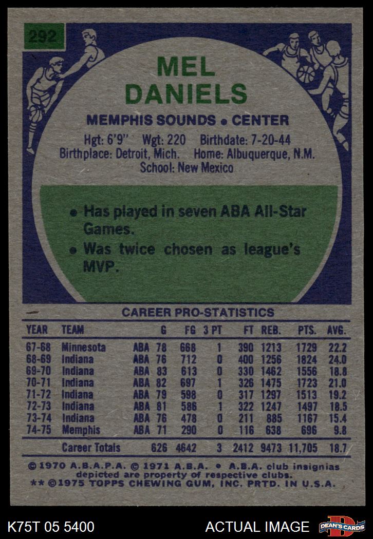 1975 Topps #292 Mel Daniels 7 - NM