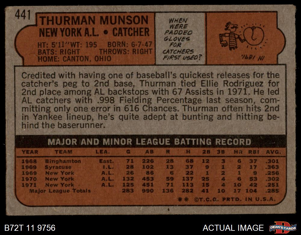 1972 Topps #441 Thurman Munson 2 - GOOD