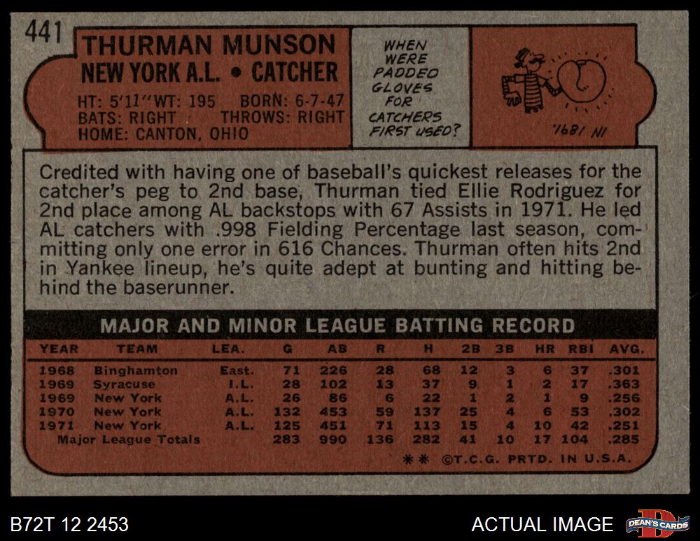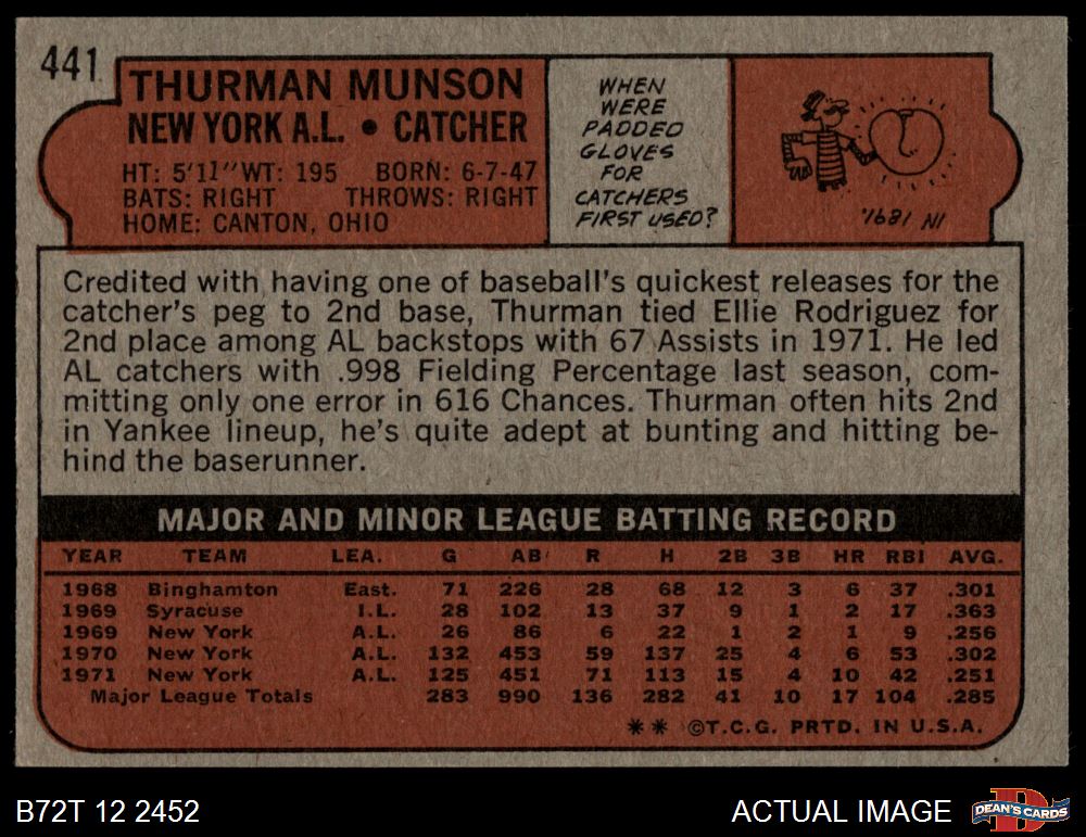 1972 Topps #441 Thurman Munson 4 - VG/EX