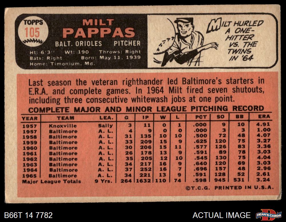 1966 Topps #105 Milt Pappas