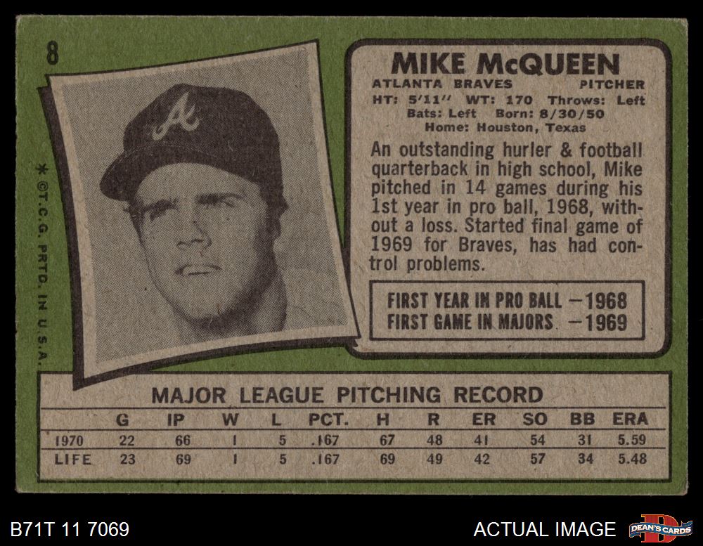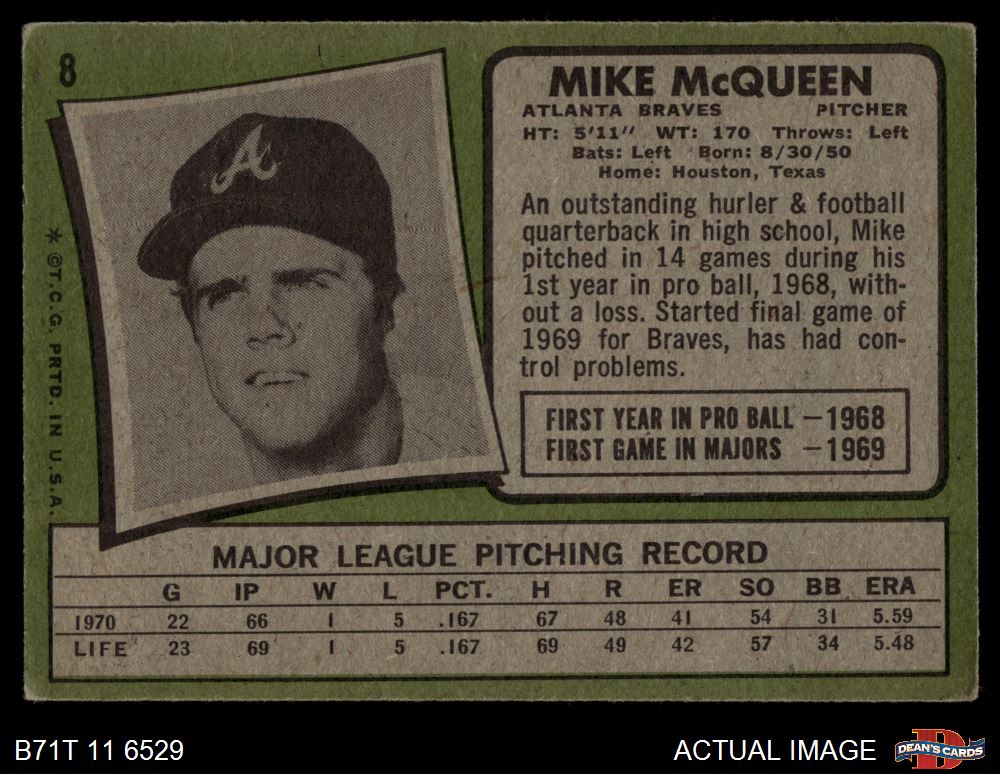 1971 Topps #8 Mike McQueen 1.5 - FAIR