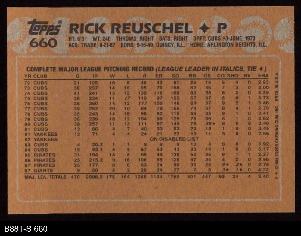 1988 Topps #660 Rick Reuschel
