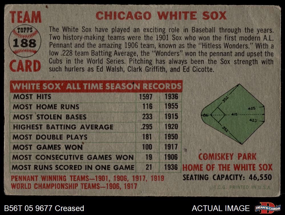 1956 Topps #188 White Sox Team