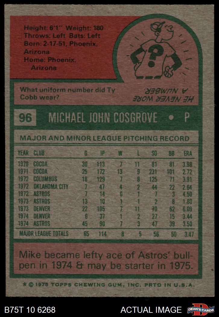 1975 Topps #96 Mike Cosgrove 5 - EX