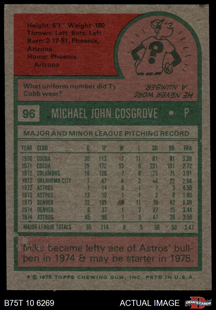 1975 Topps #96 Mike Cosgrove 6 - EX/MT
