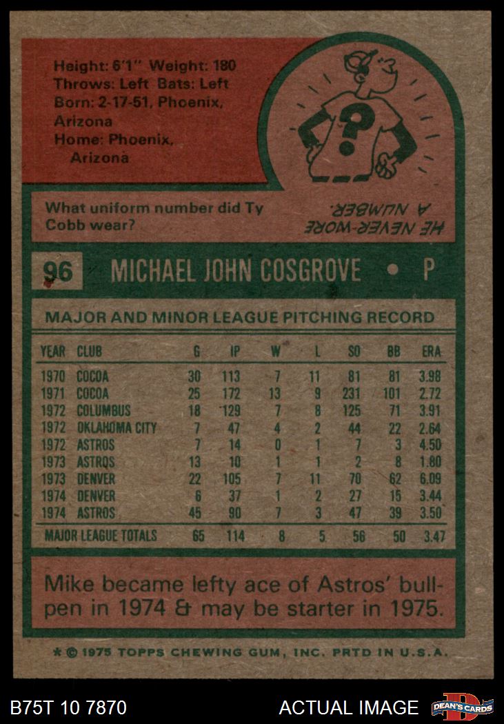 1975 Topps #96 Mike Cosgrove 7 - NM