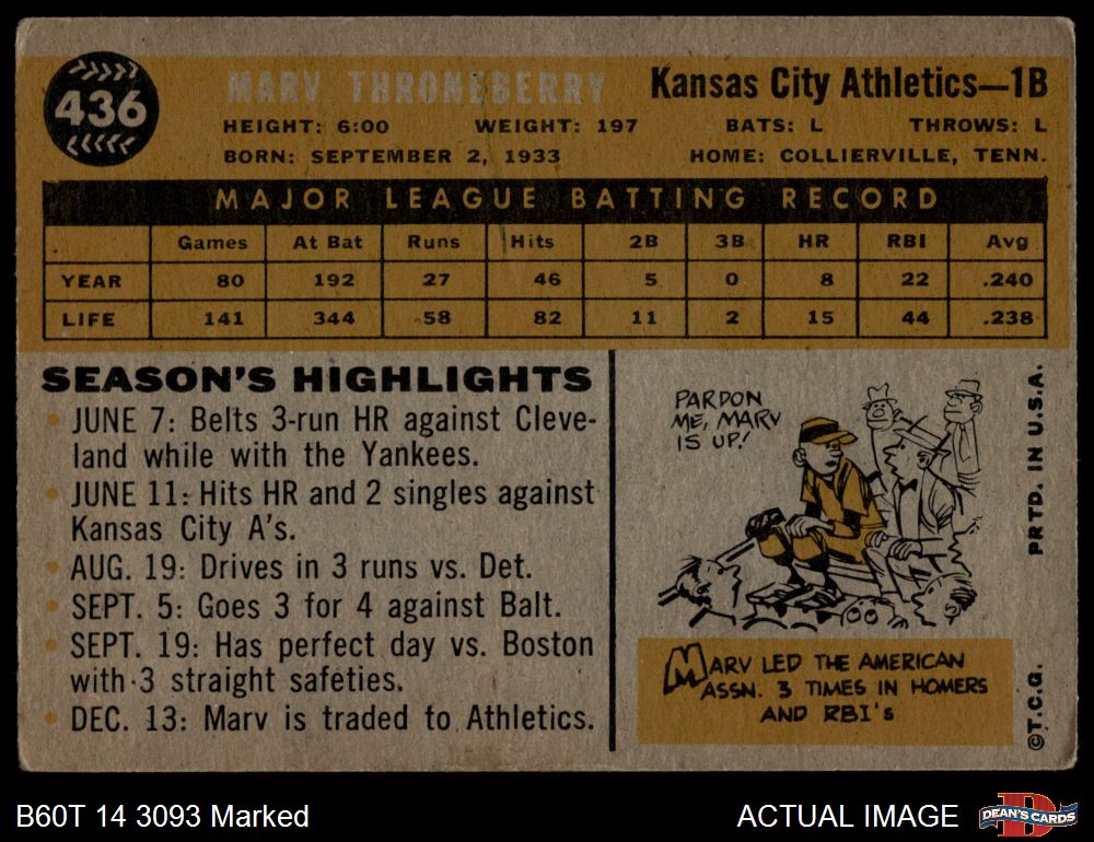 1960 Topps #436 Marv Throneberry 1.5 - FAIR