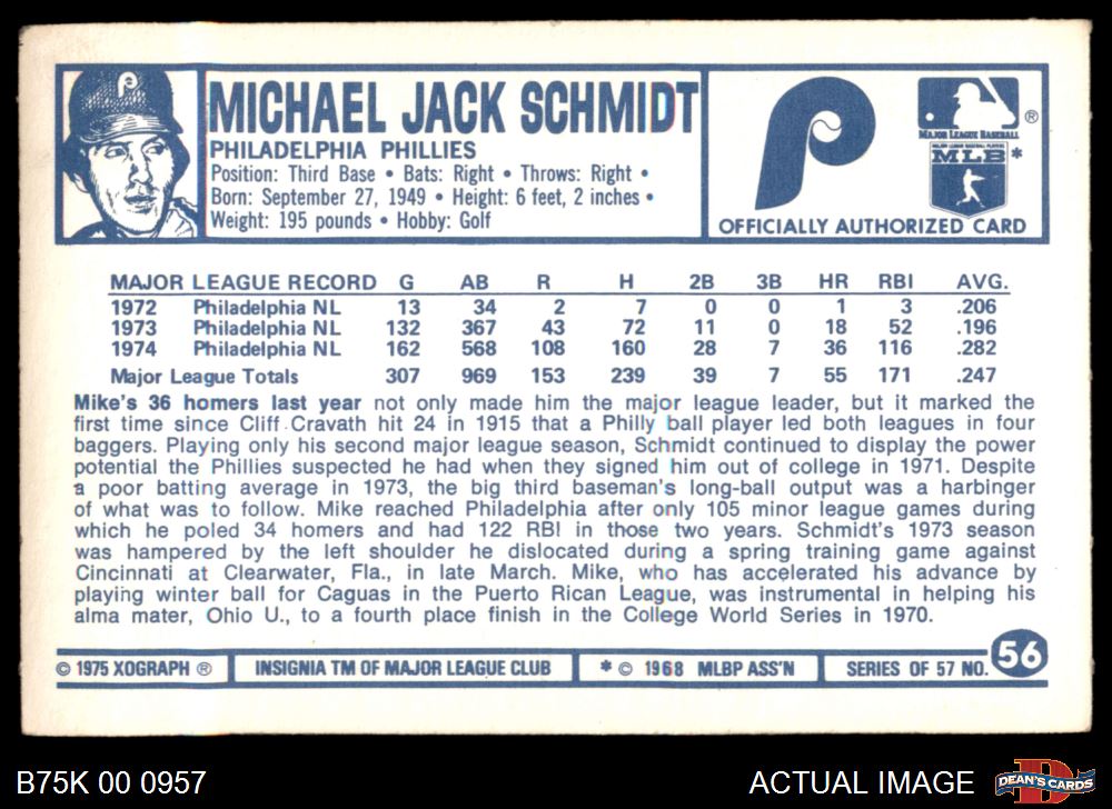 1975 Kellogg's #56 Mike Schmidt 4 - VG/EX