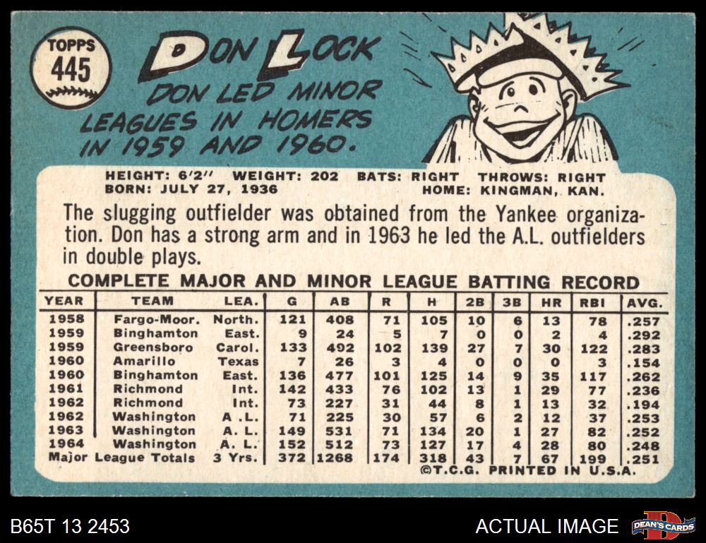 1965 Topps #445 Don Lock 4 - VG/EX