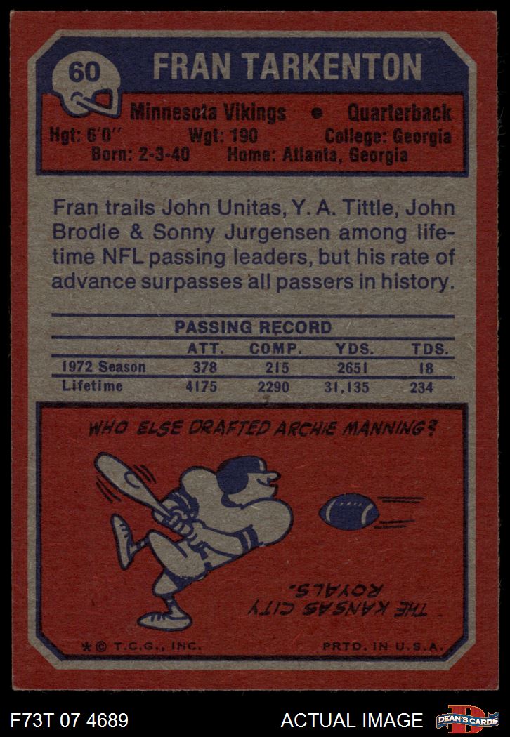 1973 Topps #60 Fran Tarkenton 6 - EX/MT