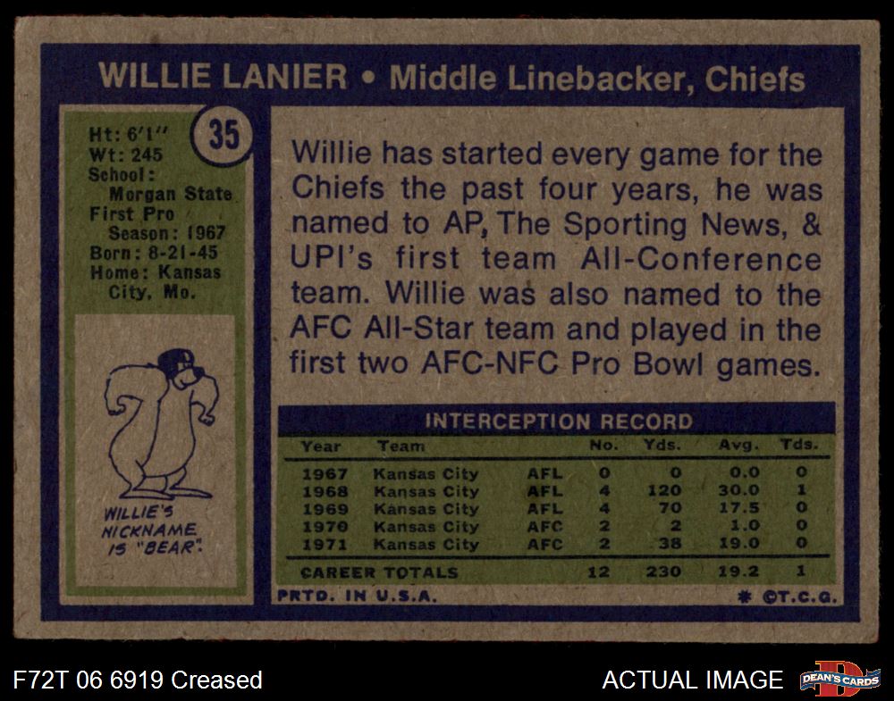 1972 Topps #35 Willie Lanier Front Thumbnail