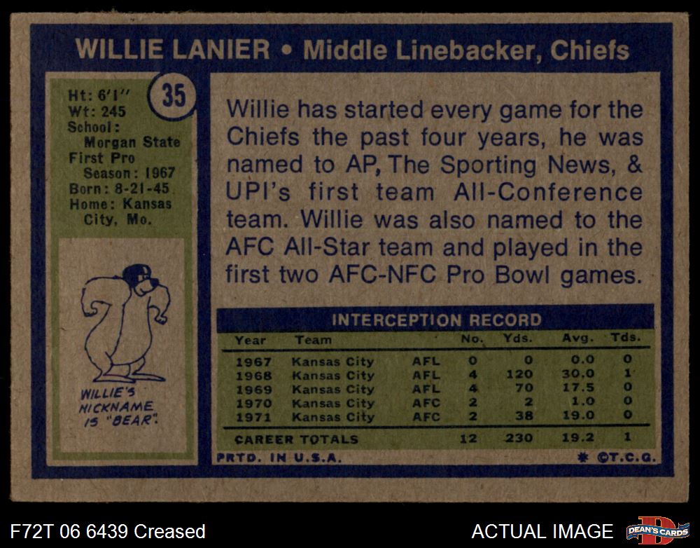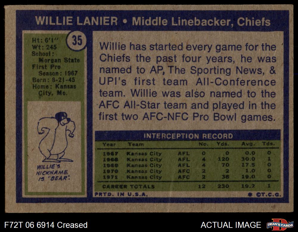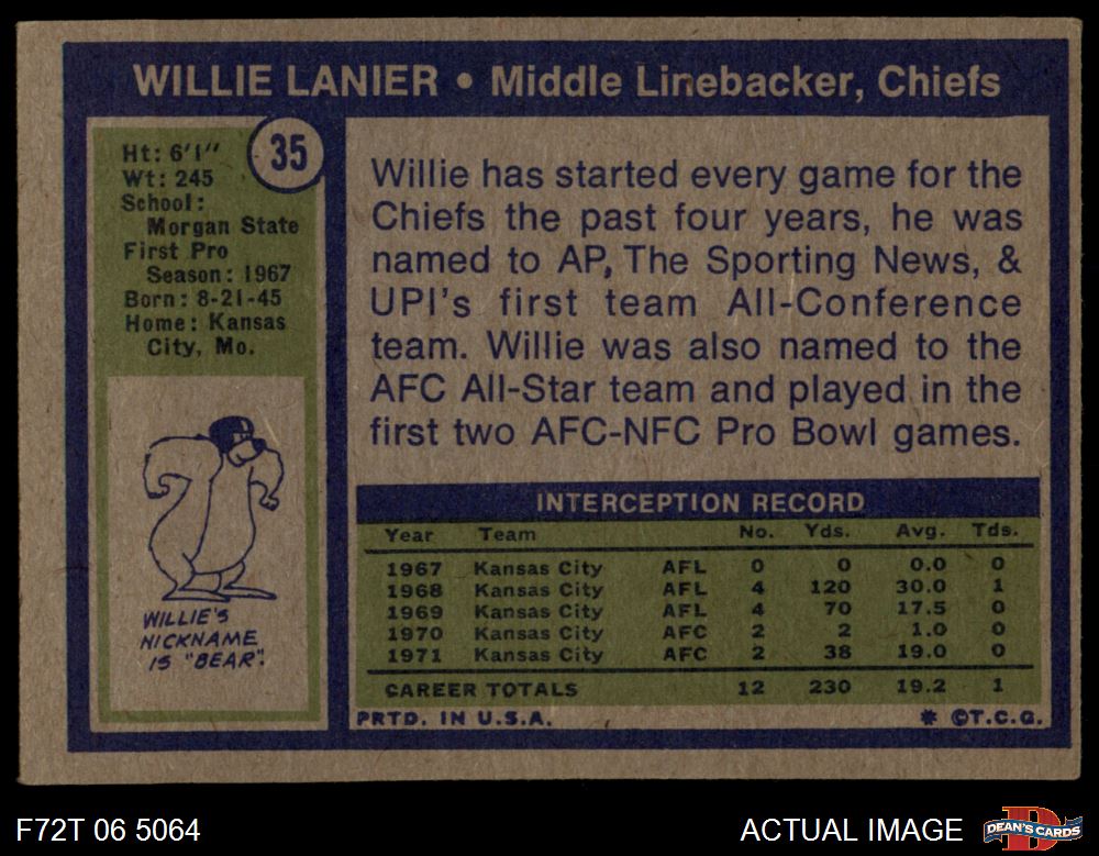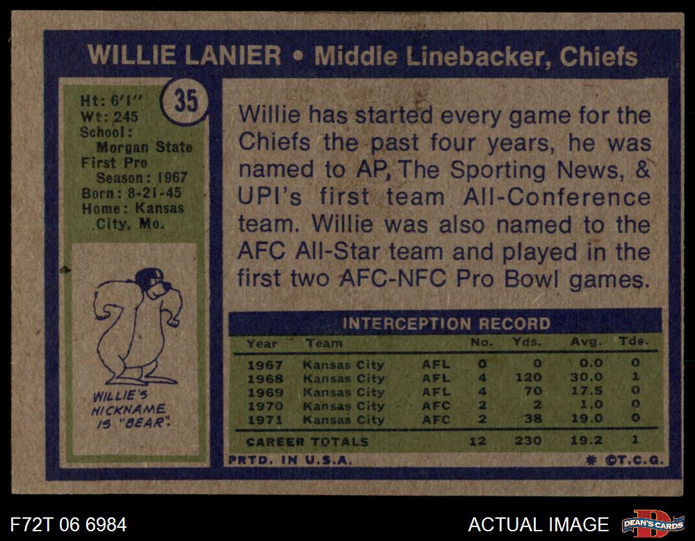 1972 Topps #35 Willie Lanier Front Thumbnail