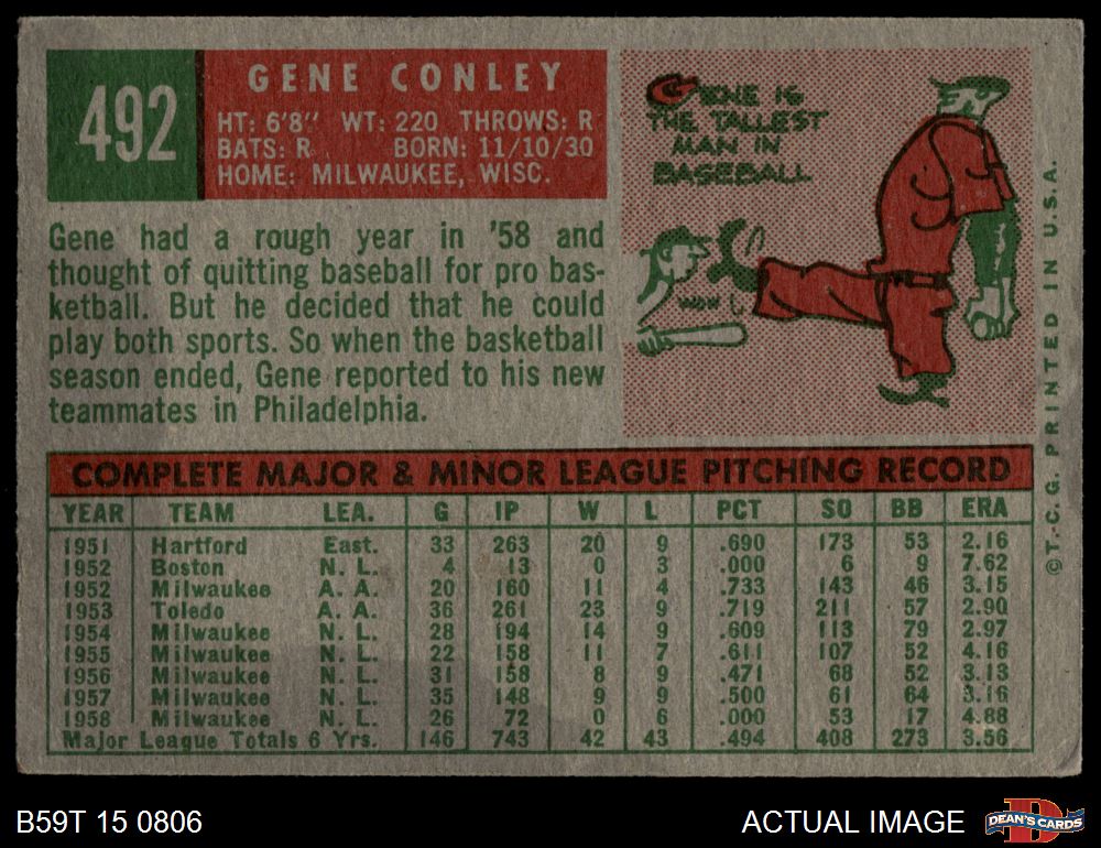 1959 Topps #492 Gene Conley 1.5 - FAIR