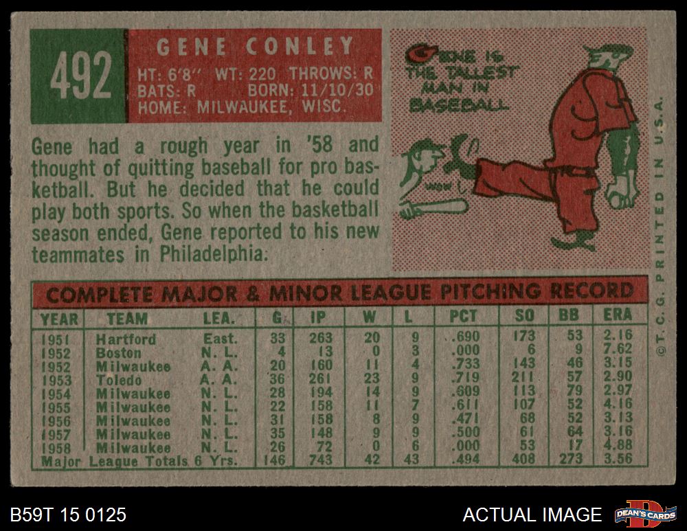 1959 Topps #492 Gene Conley 4 - VG/EX