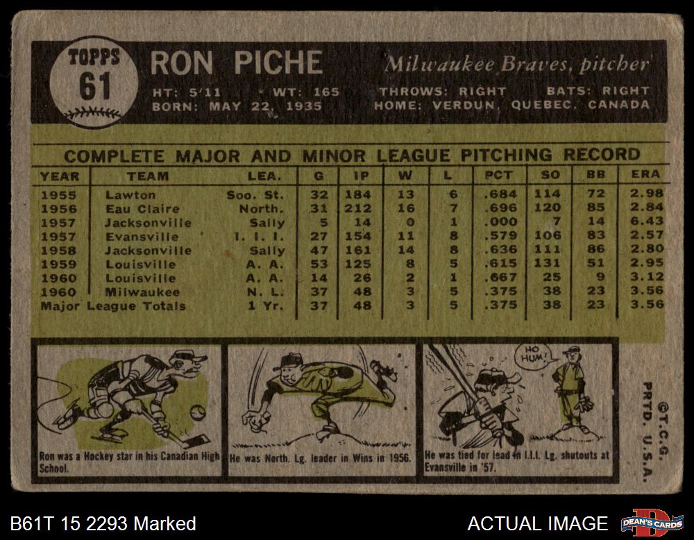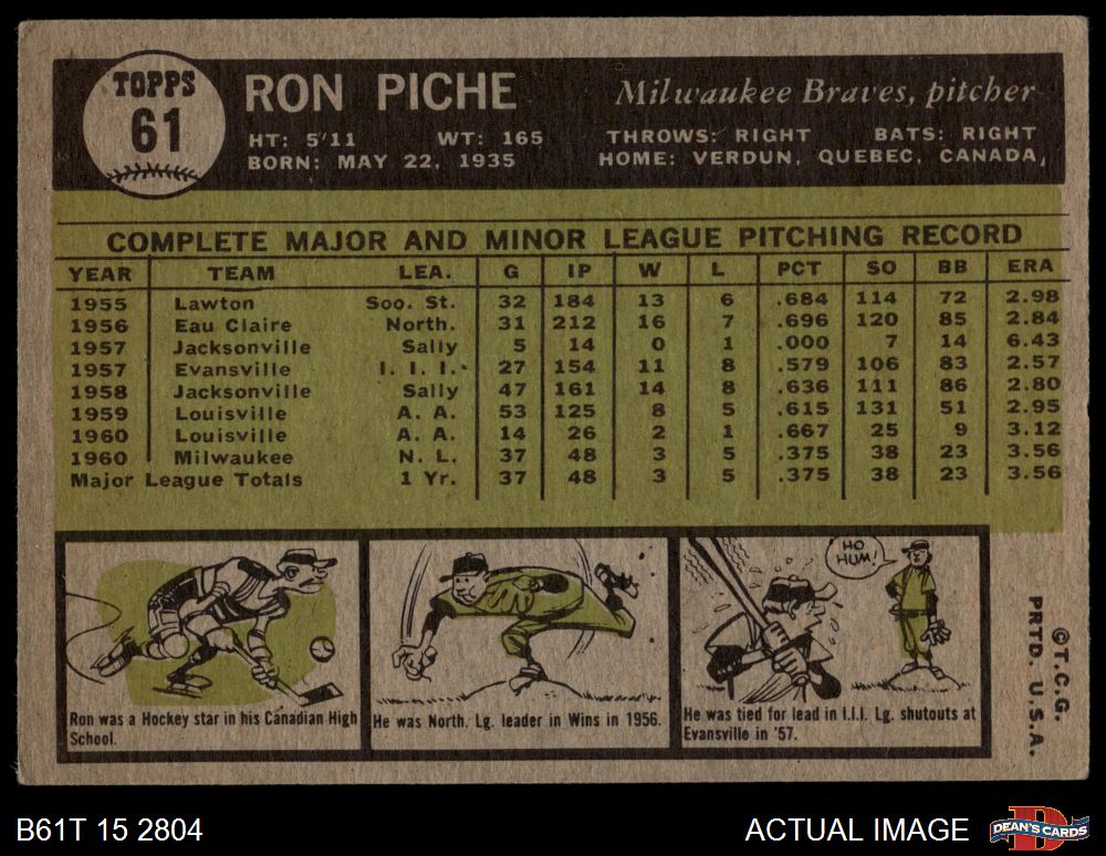 1961 Topps #61 Ron Piche
