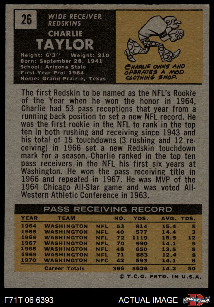 1971 Topps #26 Charlie Taylor 6 - EX/MT