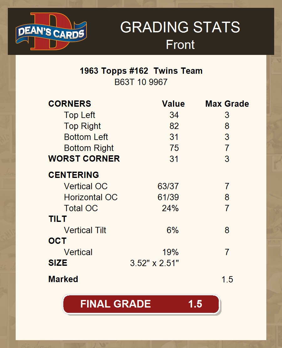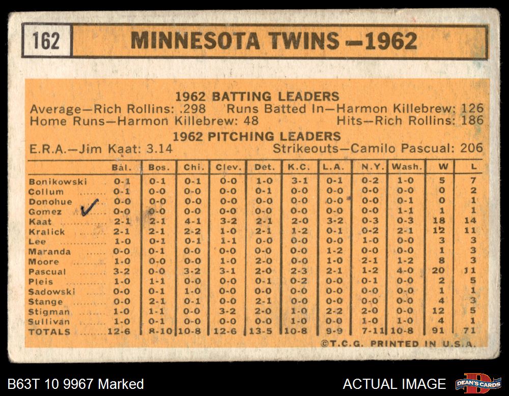 1963 Topps #162 Twins Team 1.5 - FAIR