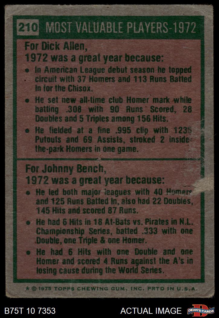 1975 Topps #210 - Rich Allen / Johnny Bench 1972 MVPs 1 - POOR
