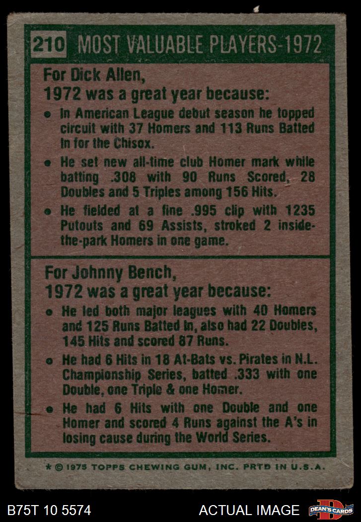 1975 Topps #210 - Rich Allen / Johnny Bench 1972 MVPs 2 - GOOD