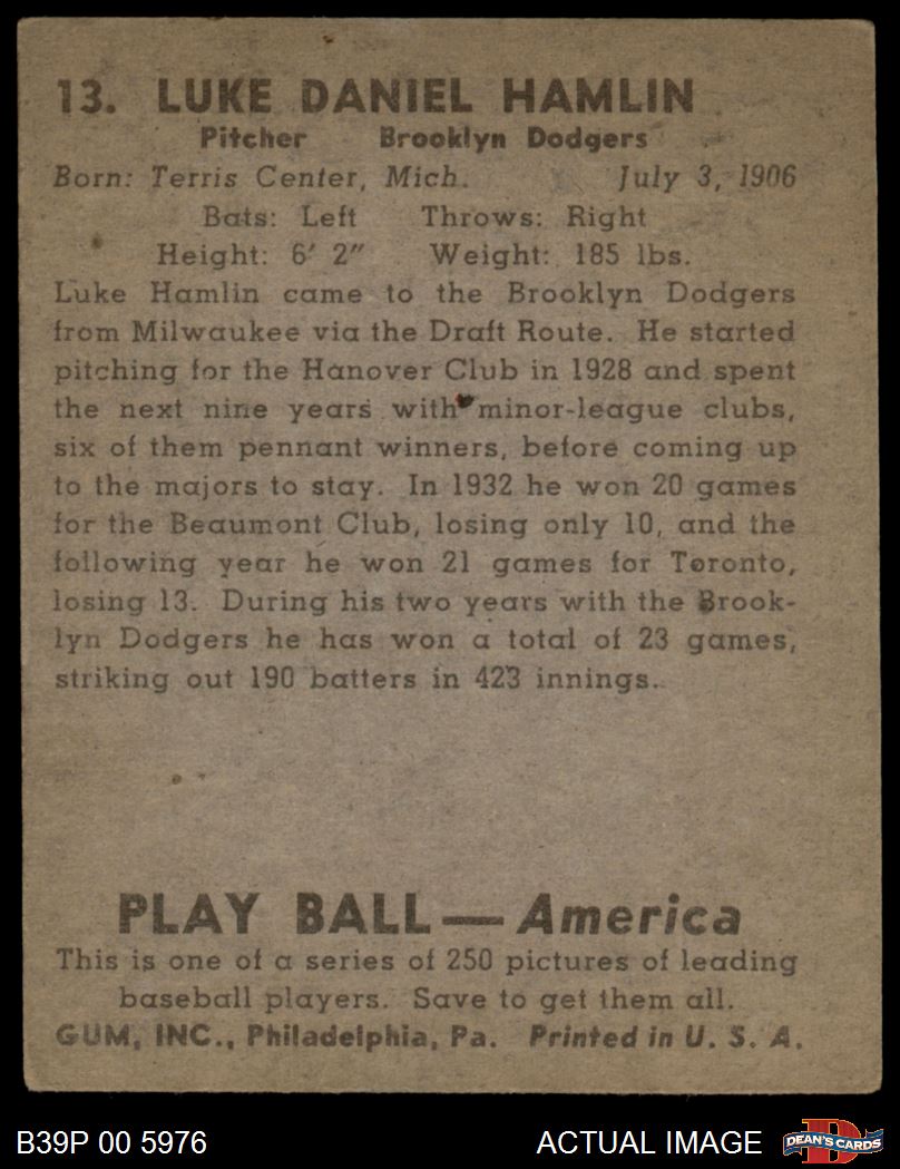 1939 Play Ball #13 Luke Hamlin