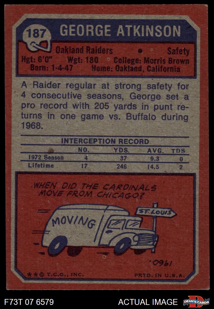1973 Topps #187 George Atkinson 5 - EX