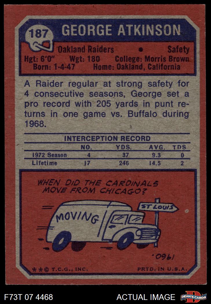 1973 Topps #187 George Atkinson 6 - EX/MT