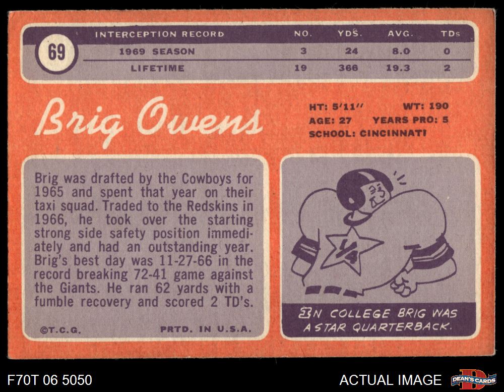 1970 Topps #69 Brig Owens 3 - VG