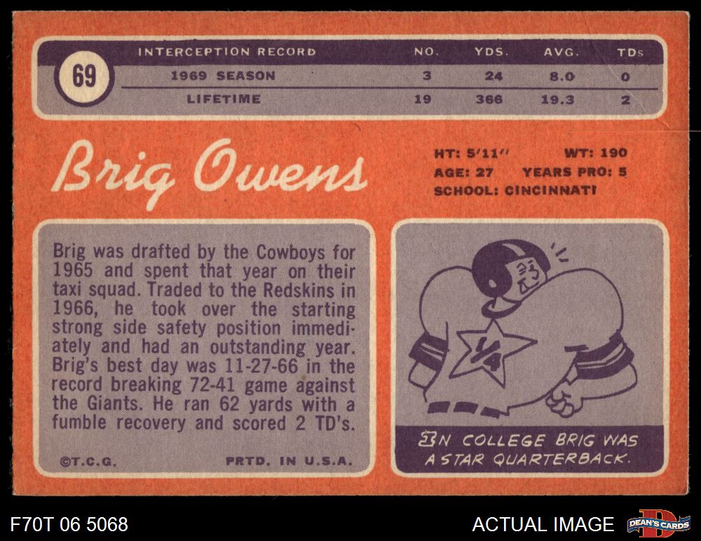 1970 Topps #69 Brig Owens 4 - VG/EX
