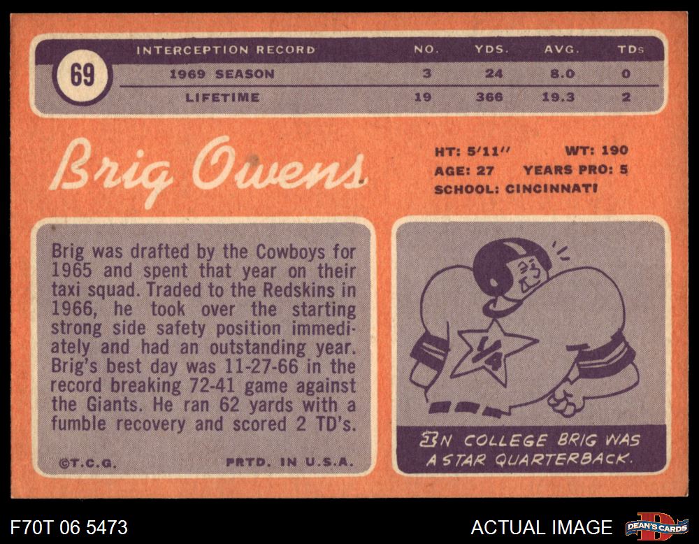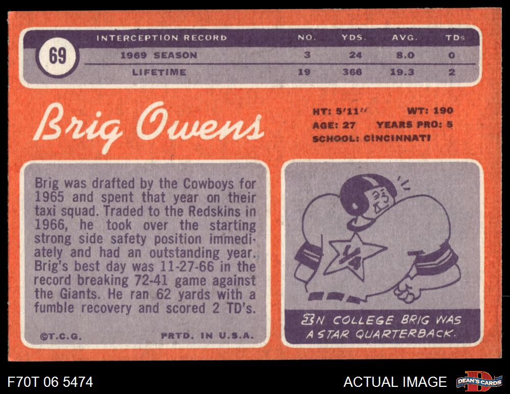 1970 Topps #69 Brig Owens 6 - EX/MT