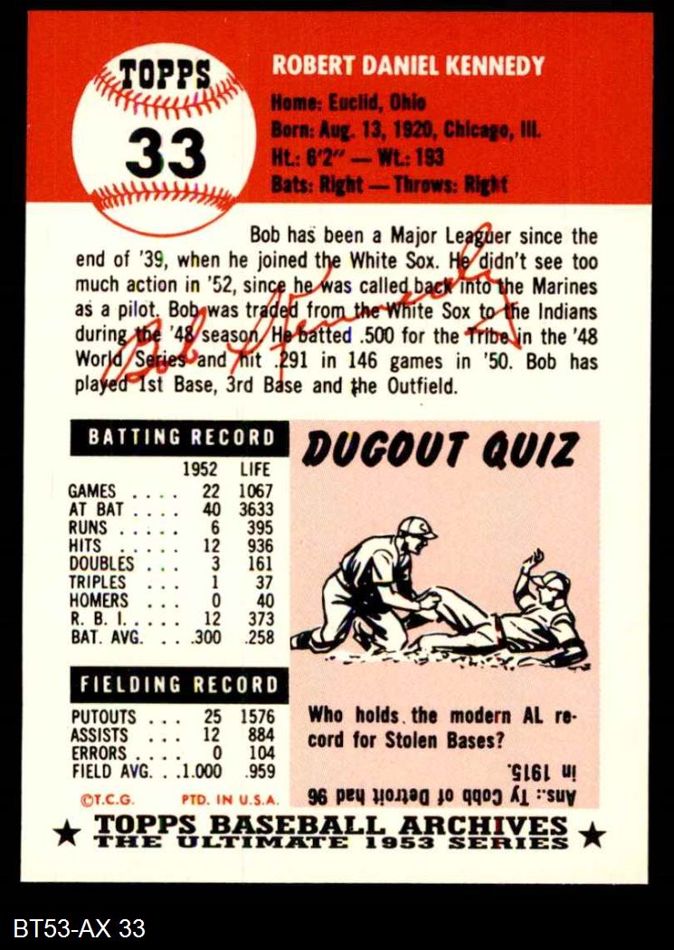 1953 Topps Archives #33 Bob Kennedy 8 - NM/MT