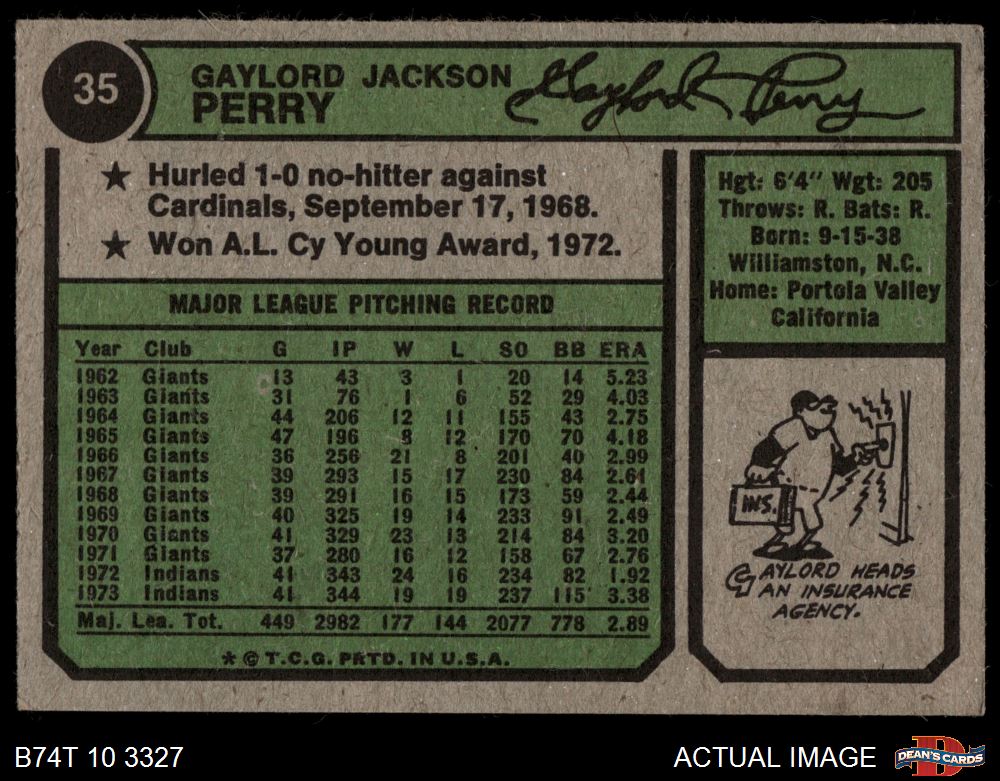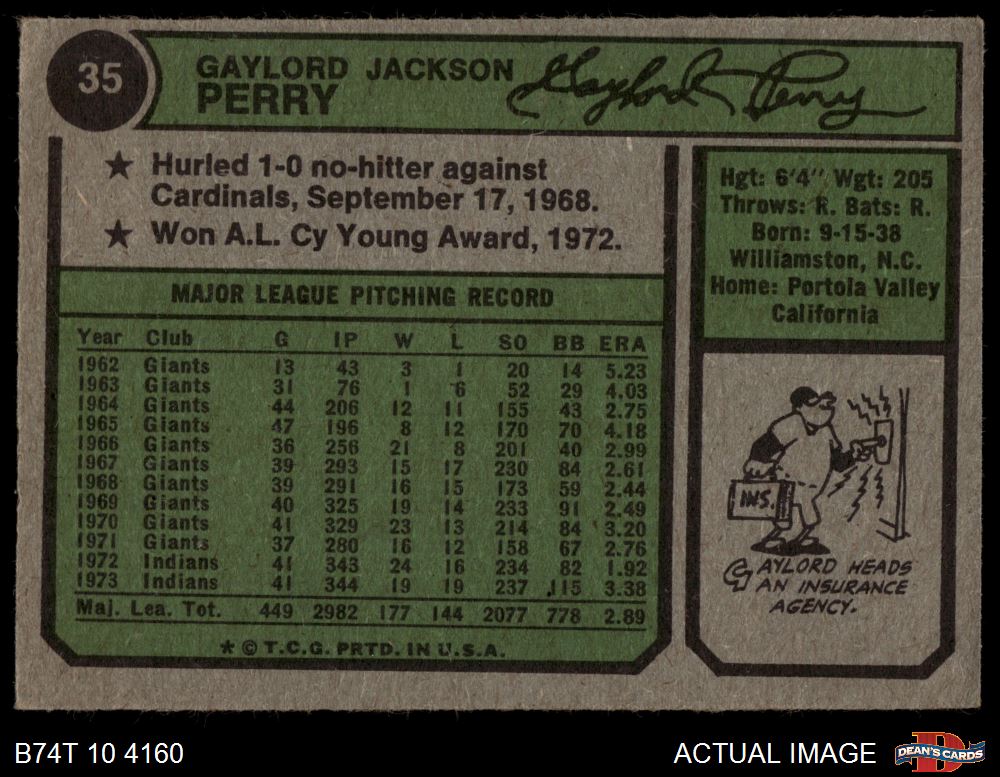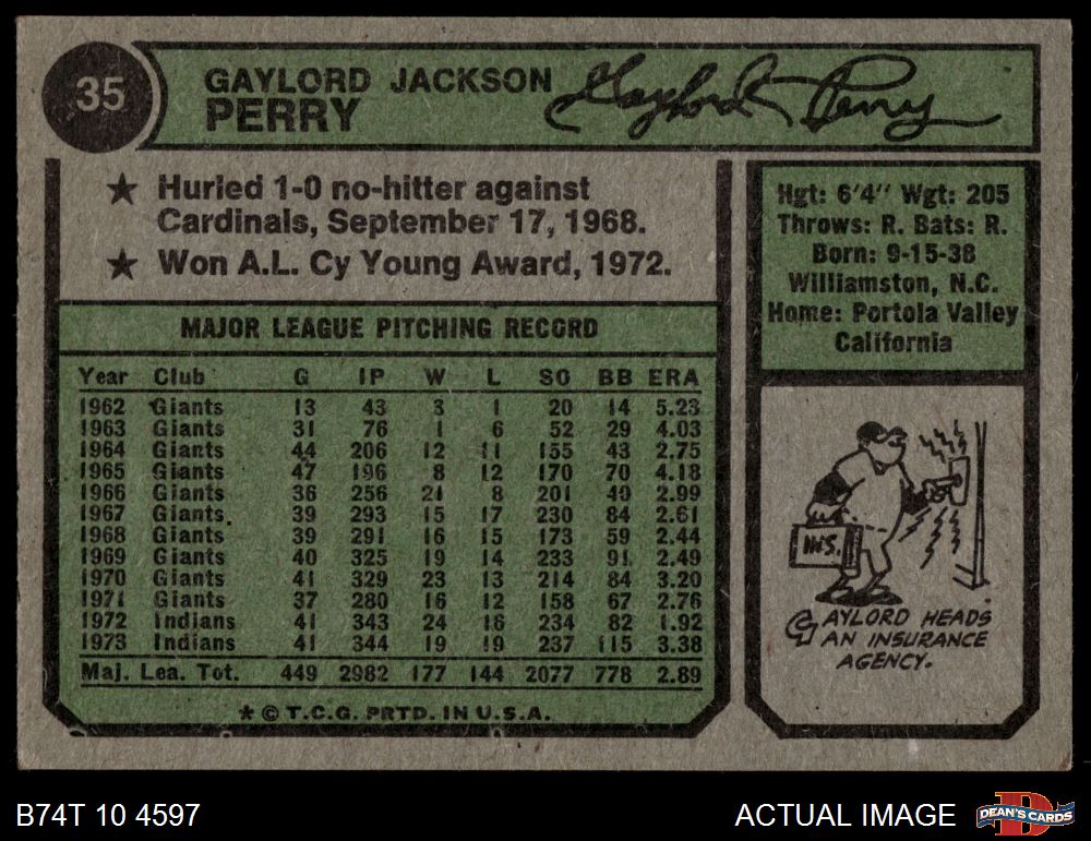 1974 Topps #35 Gaylord Perry