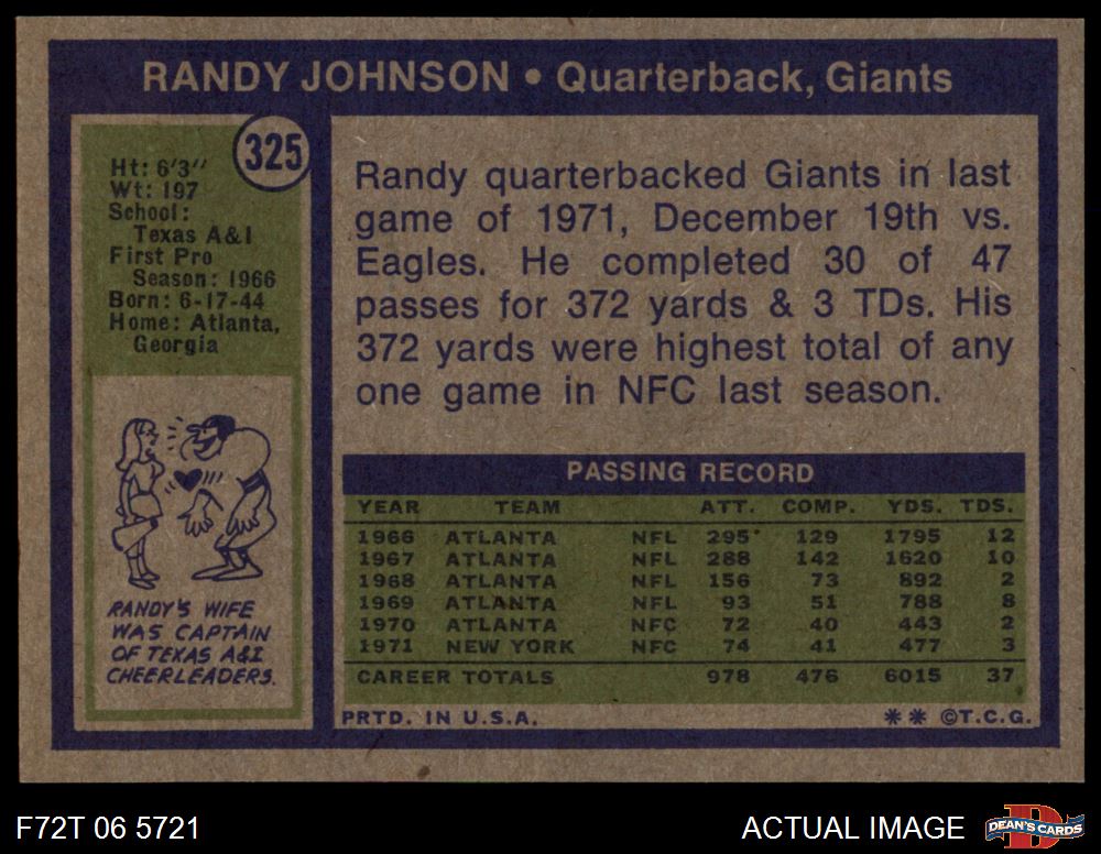 1972 Topps #325 Randy Johnson 8 - NM/MT
