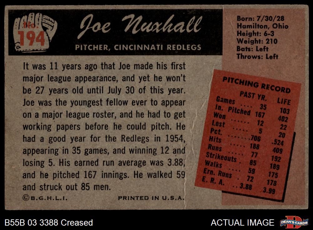 1955 Bowman #194 Joe Nuxhall Front Thumbnail