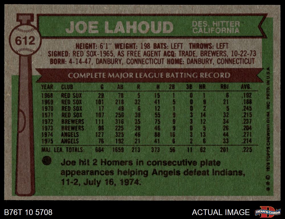 1976 Topps #612 Joe Lahoud 6 - EX/MT