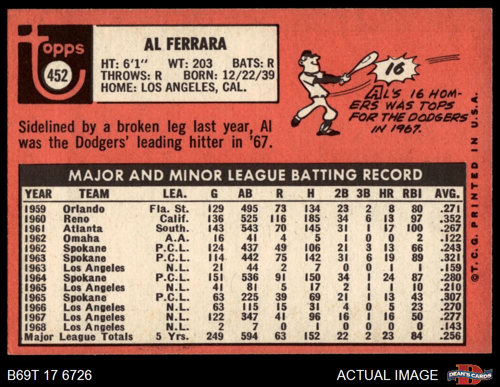 1969 Topps #452 YN Al Ferrara 6.5 - EX/MT+