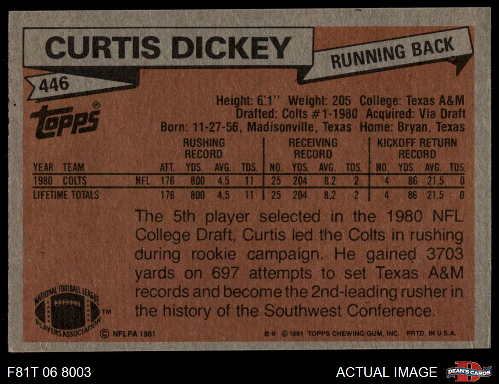 1981 Topps #446 Curtis Dickey 4 - VG/EX