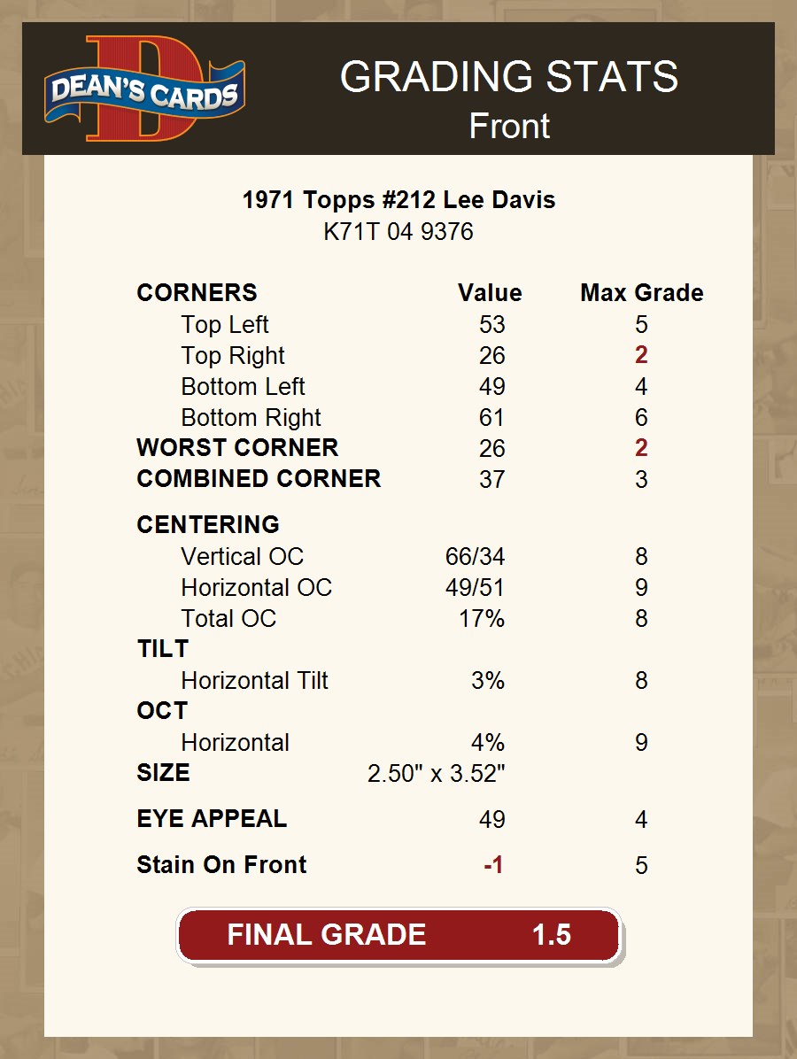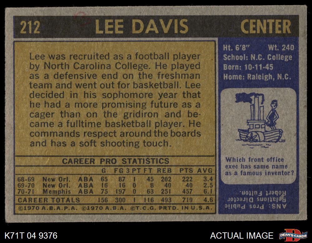 1971 Topps #212 Lee Davis 1.5 - FAIR
