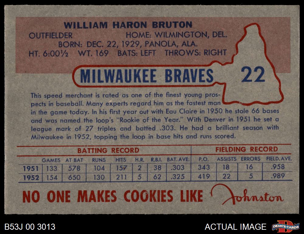 1953 Johnston Cookies #22 Bill Bruton 5 - EX