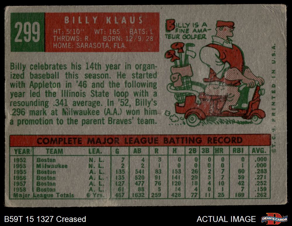 1959 Topps #299 Billy Klaus 2 - GOOD