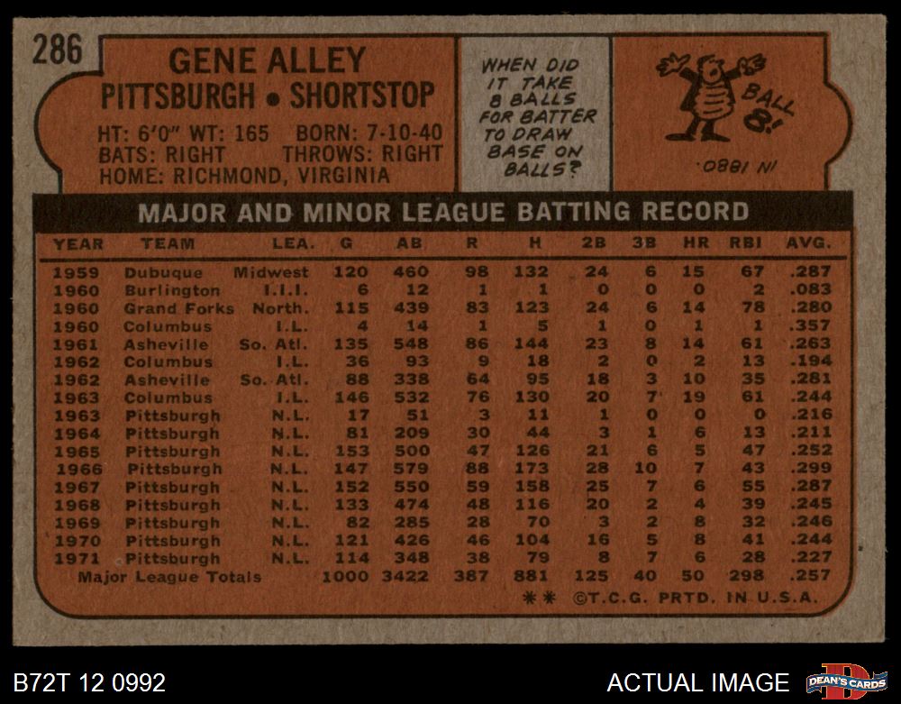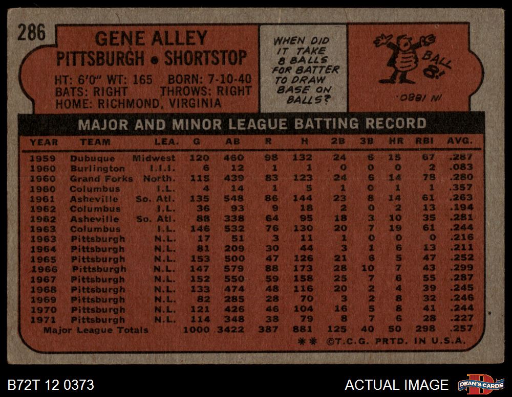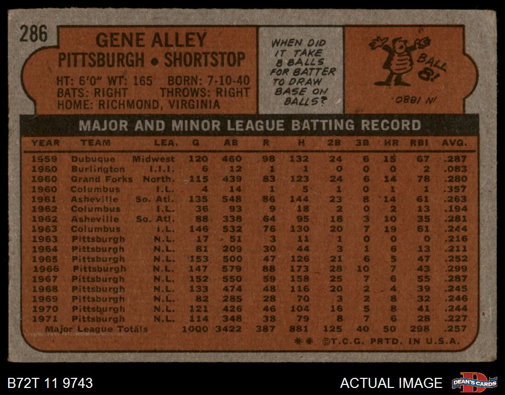 1972 Topps #286 Gene Alley