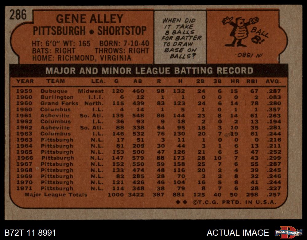 1972 Topps #286 Gene Alley 4 - VG/EX
