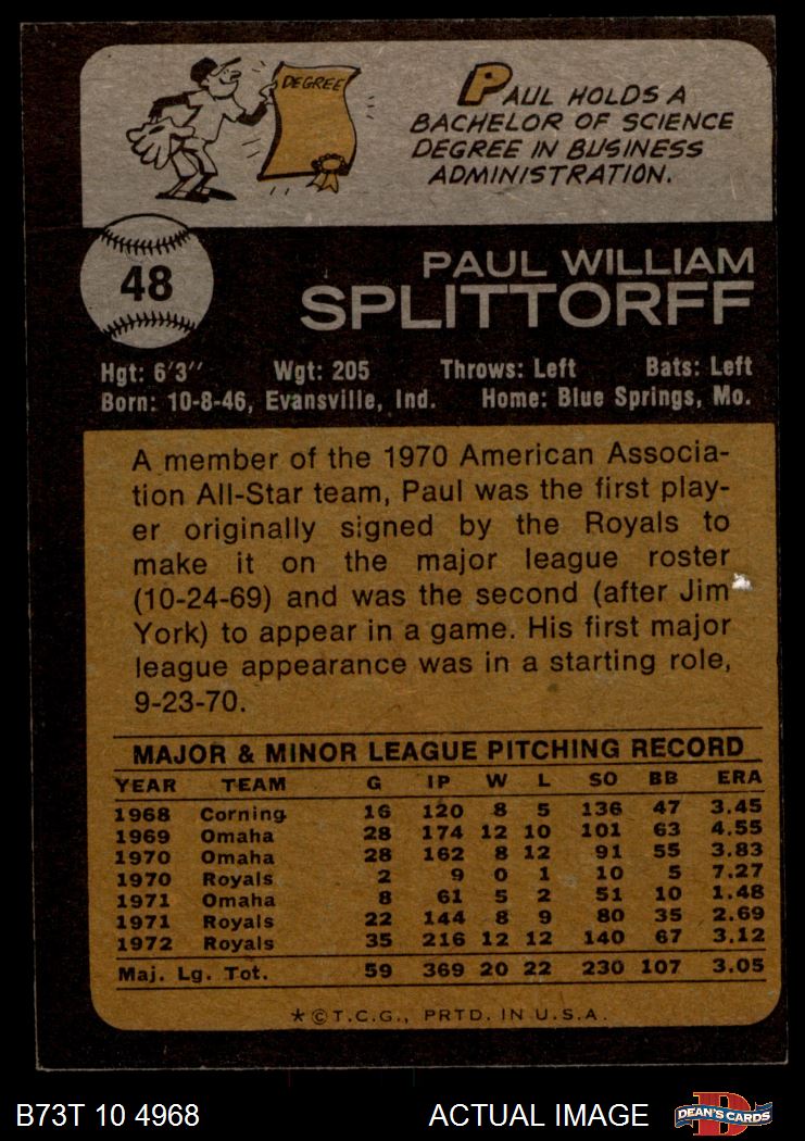 1973 Topps #48 Paul Splittorff 4 - VG/EX