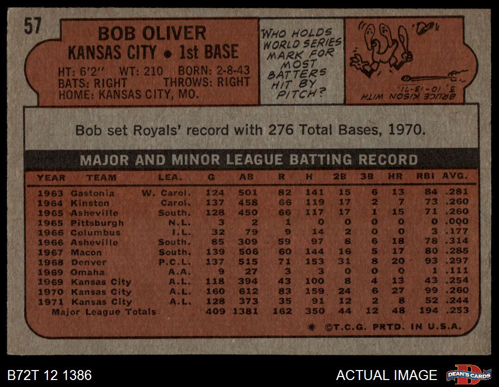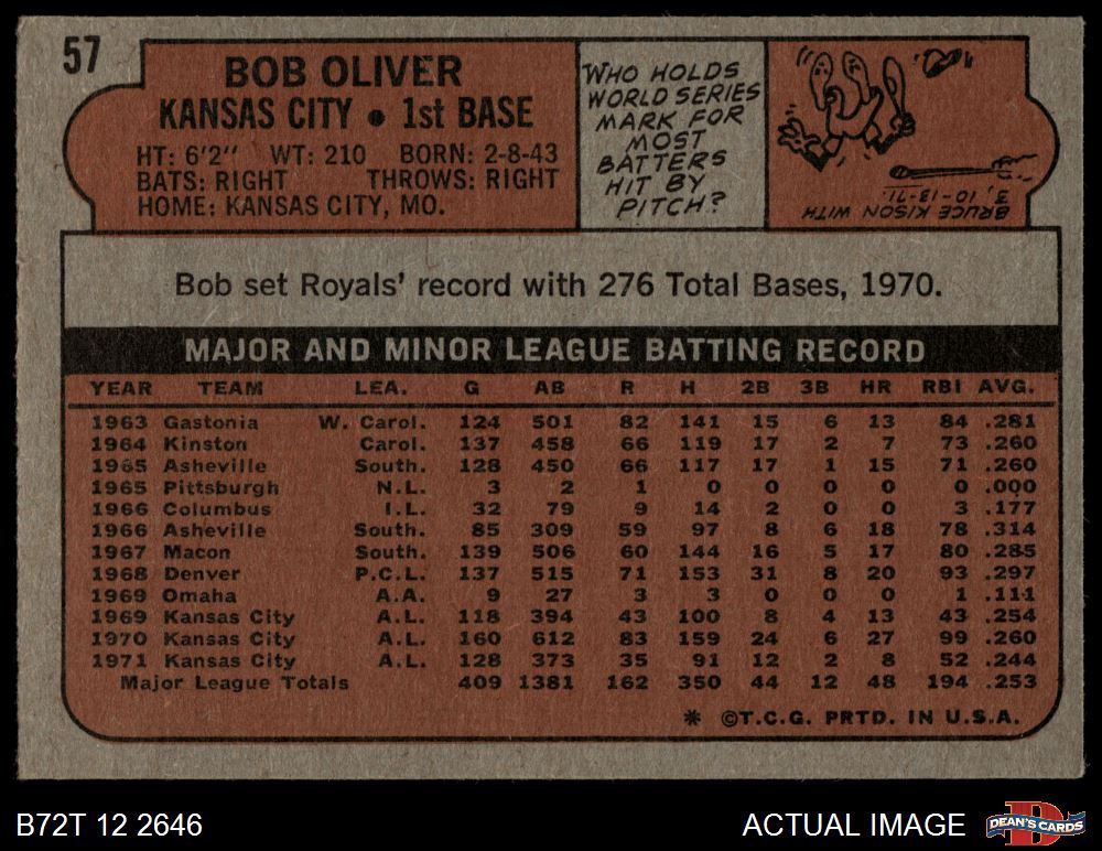 1972 Topps #57 Bob Oliver