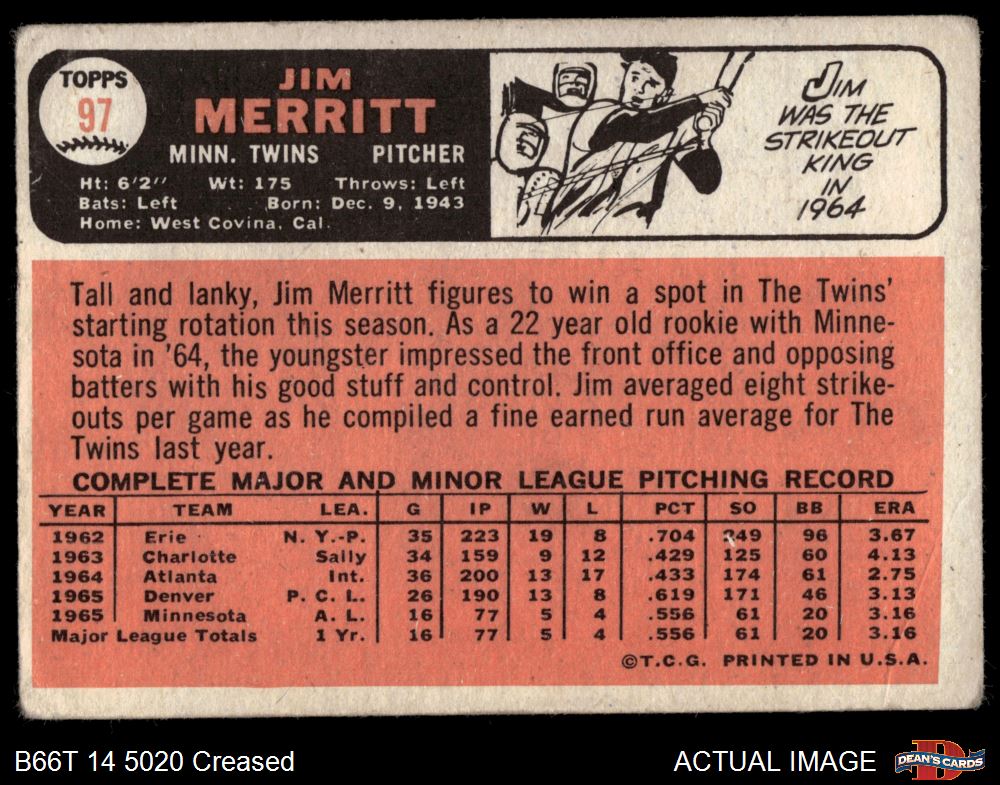 1966 Topps #97 Jim Merritt Front Thumbnail
