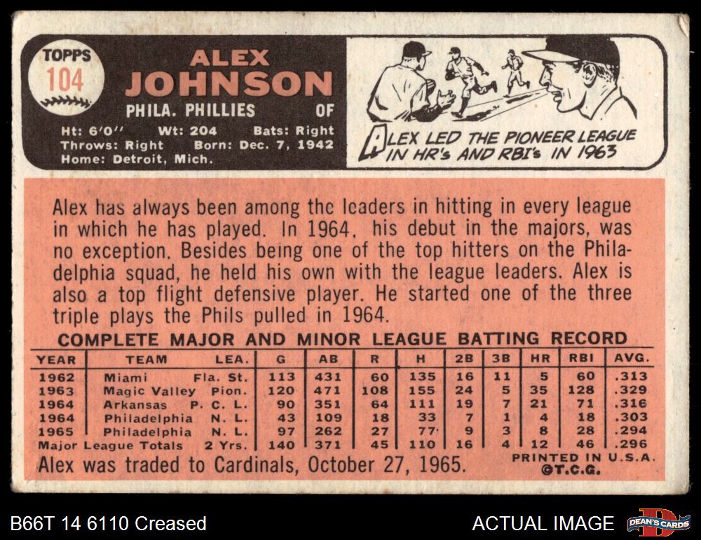 1966 Topps #104 TR Alex Johnson 1.5 - FAIR