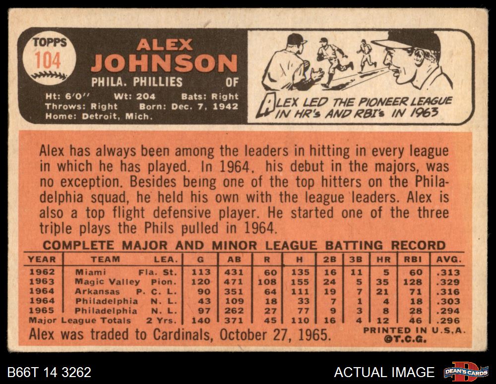 1966 Topps #104 TR Alex Johnson 3 - VG